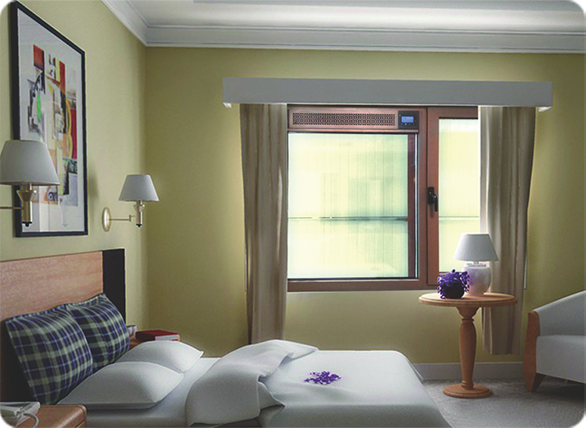 窗式新風(fēng)系統(tǒng)凈化室外空氣入室內(nèi),形成正壓,排出室內(nèi)污濁空氣,維持室內(nèi)空氣清新。